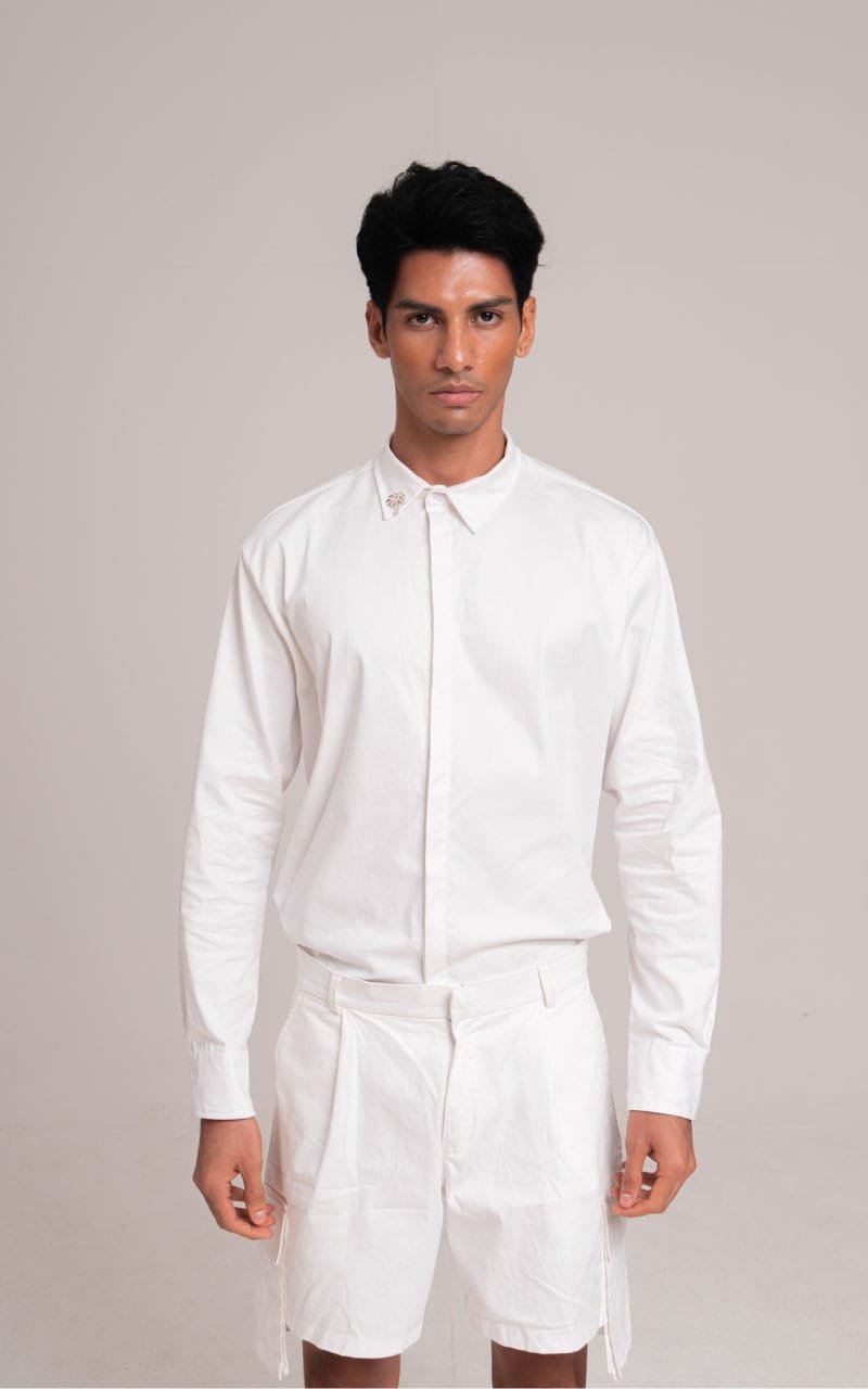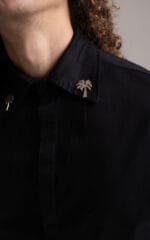 Camisa oversized manga larga con apliques en el cuello.