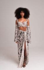 Set de top, mangas y falda en lentejuelas estampadas ajustable en espalda y cintura.
