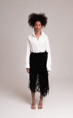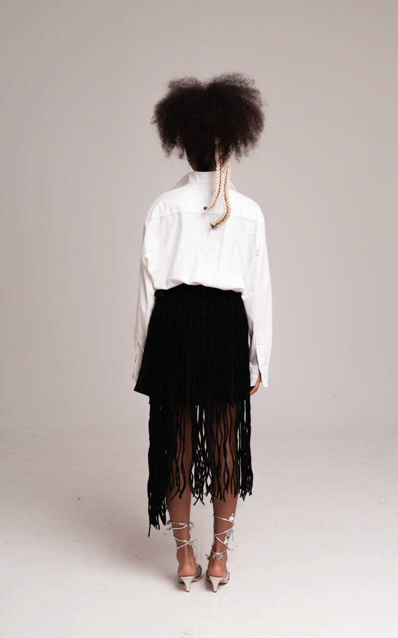 Falda corto con flecos en textil nylon. espalda con nudo ajustable.